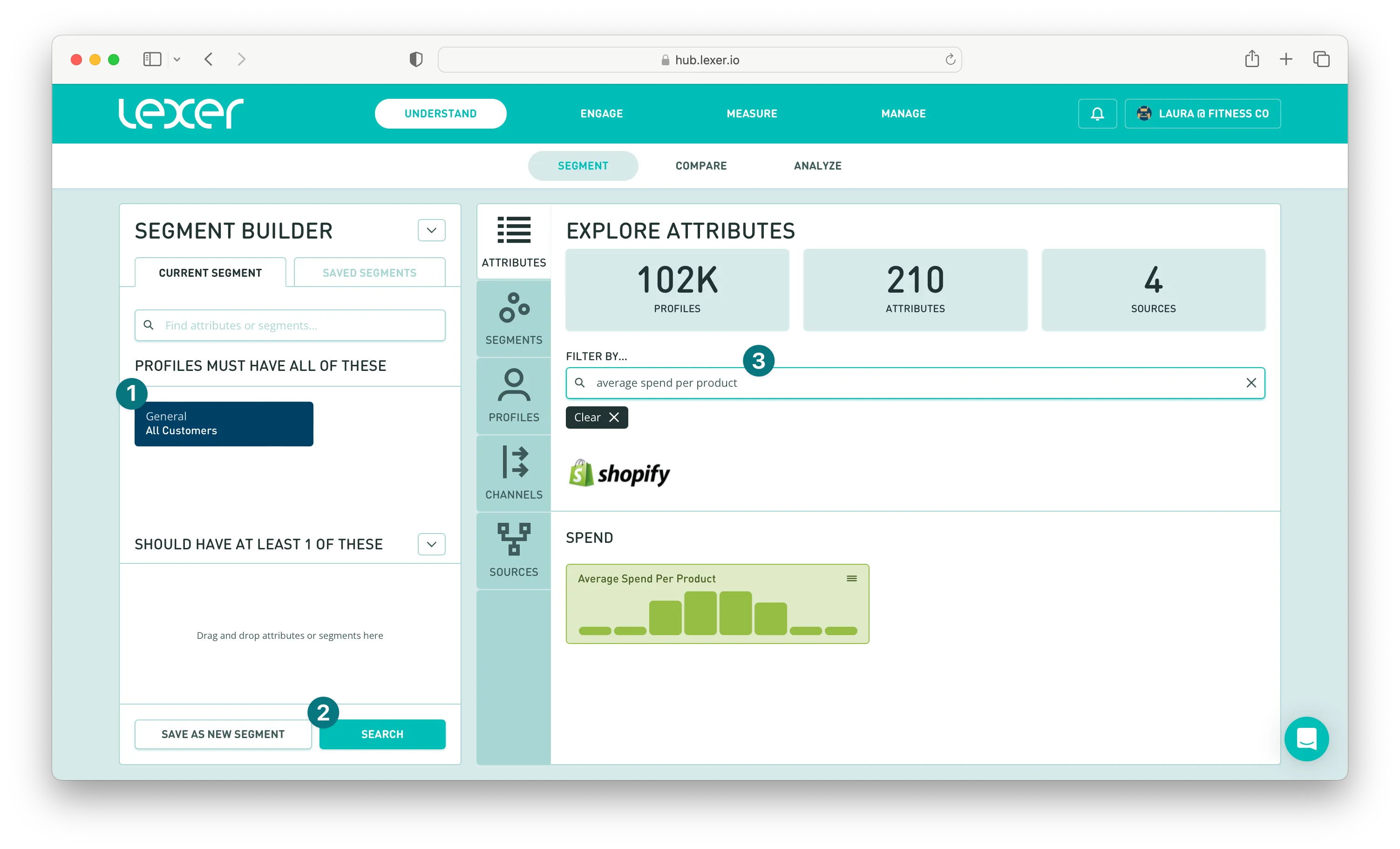 - Then, under Explore Attributes filter for Average Spend Per Product.