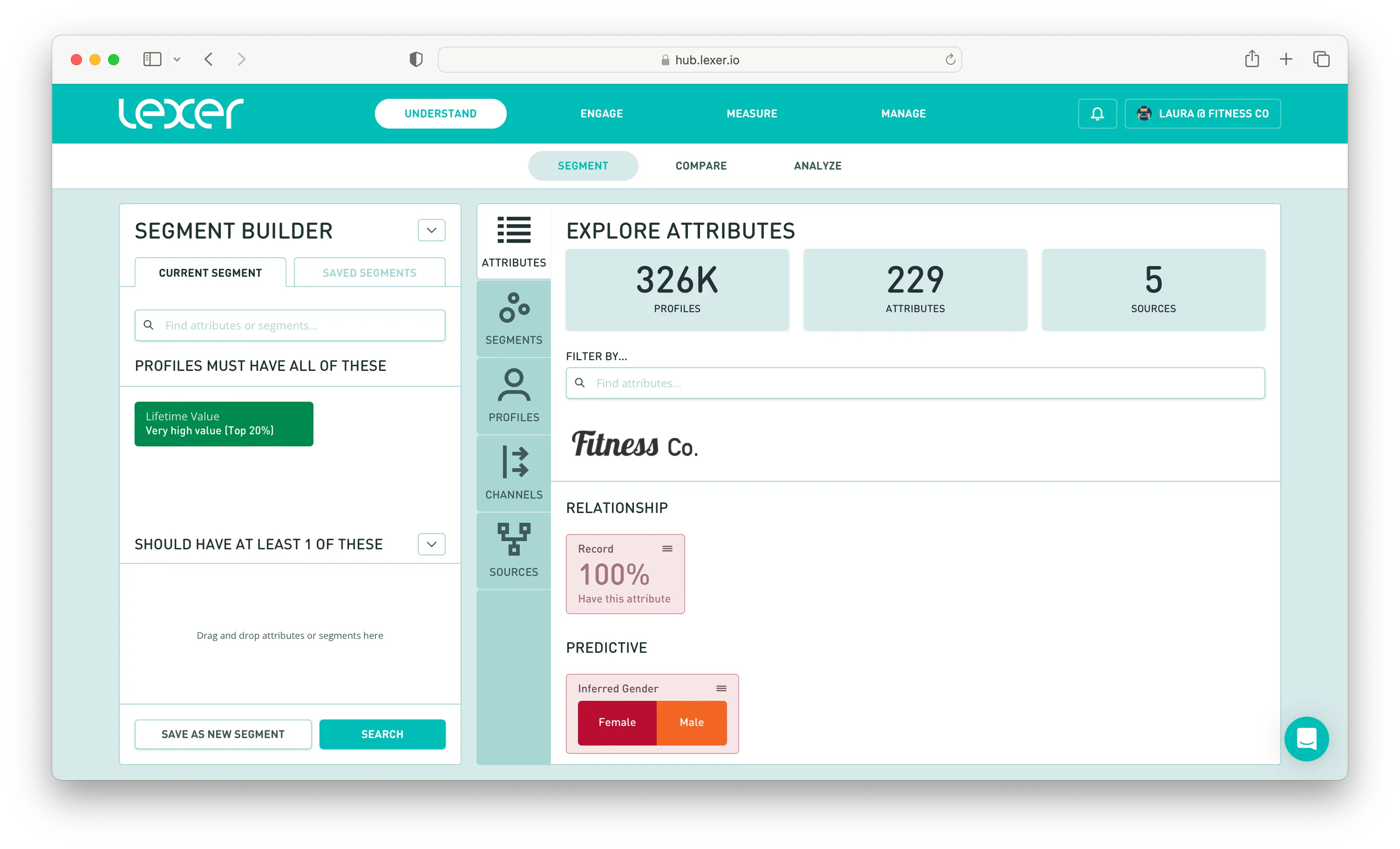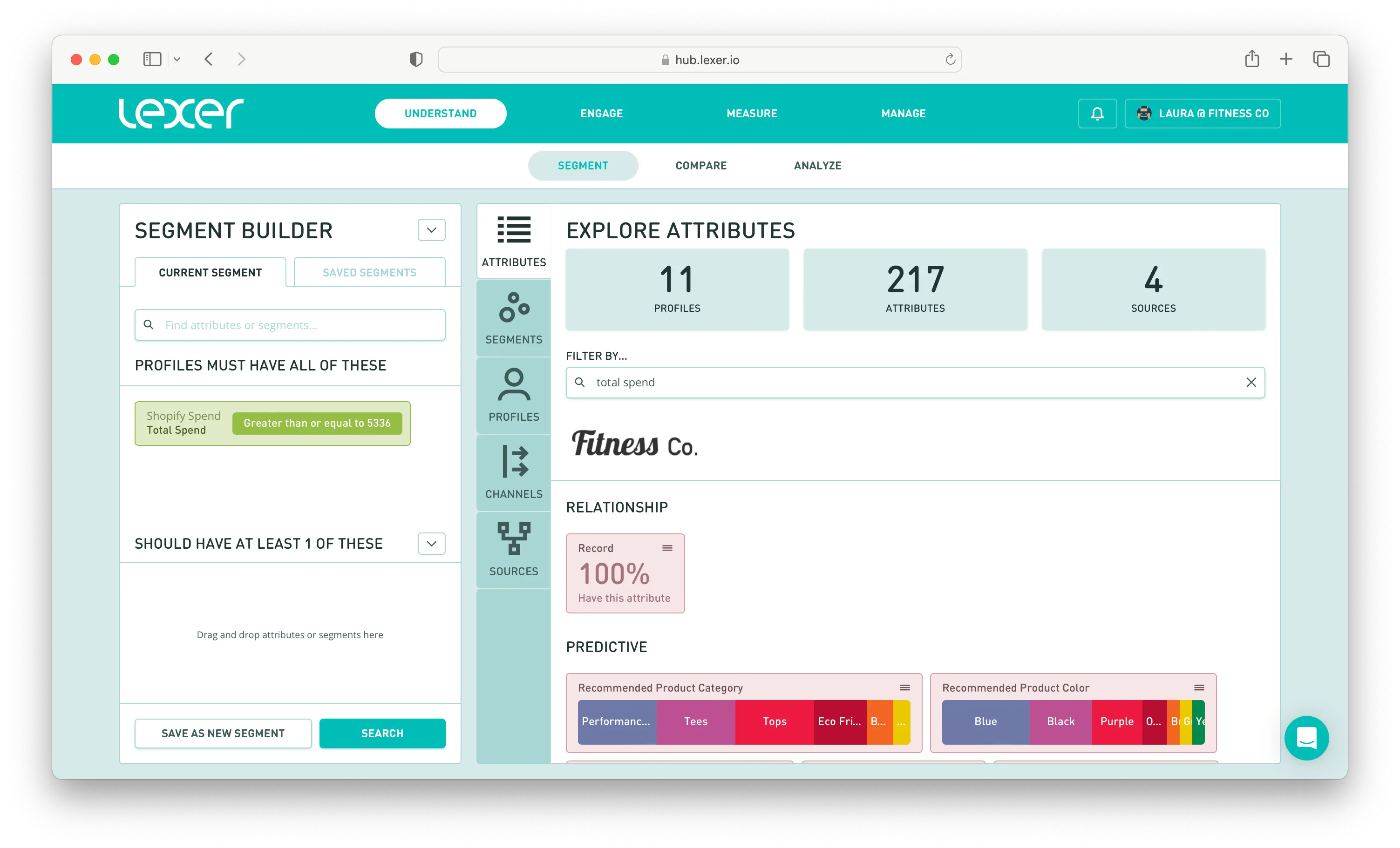 To do so, navigate to Understand > Segment and then to the PROFILES MUST HAVE ALL OF THESE section of the Segment Builder add one of your high-value customer segments. Hit Search.