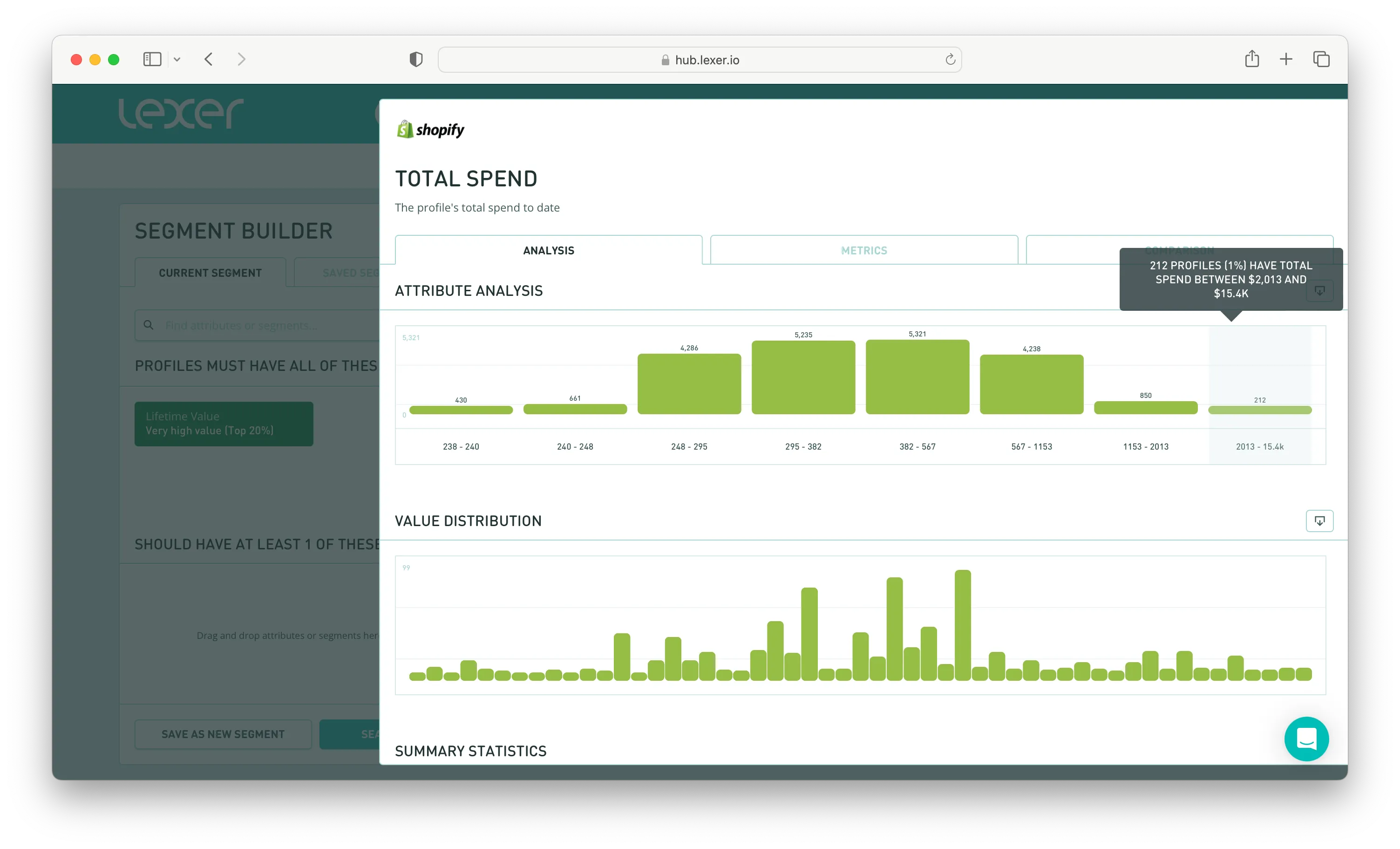 From the screenshot below you can see that out of your high-value customers, just over 200 have a total spend of more than $2,013.