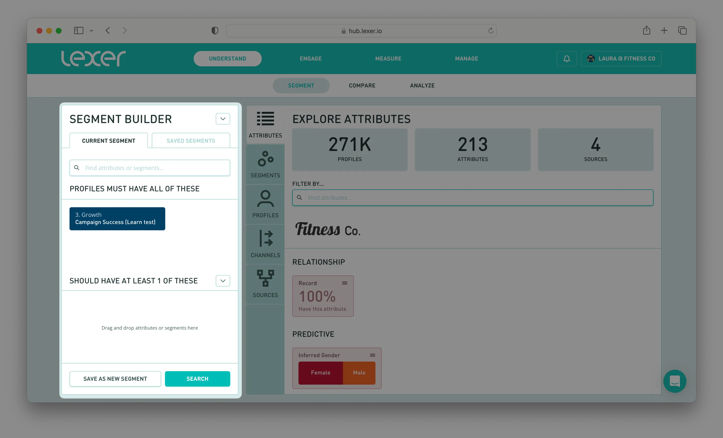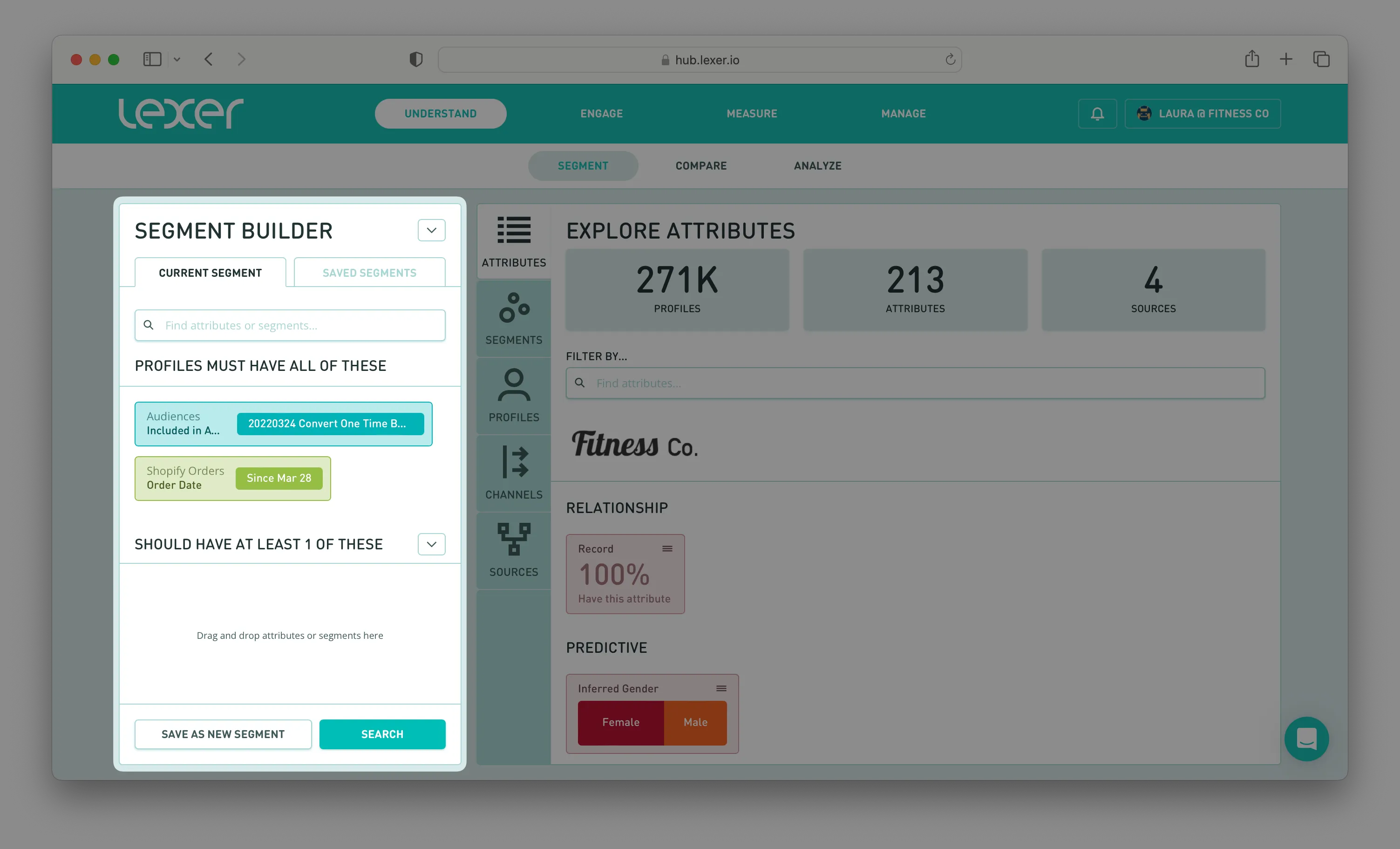 For example, you can search for customers included in an audience, and also include an Attribute for ‘recently purchased’ to understand the conversion rate from within Segment.