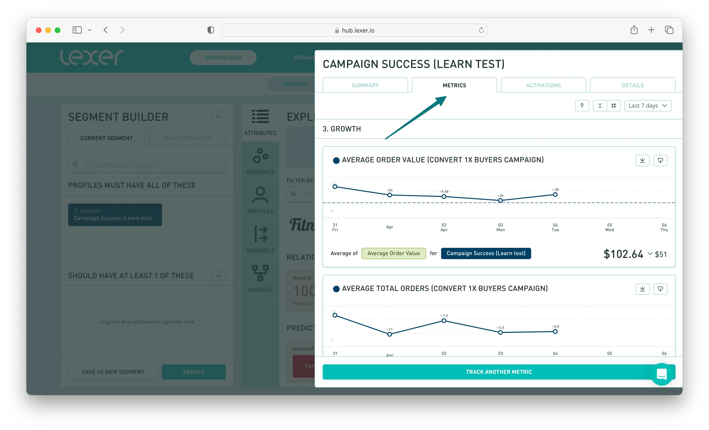 Once this segment has been created, you can Save it and then start to create your campaign metrics.