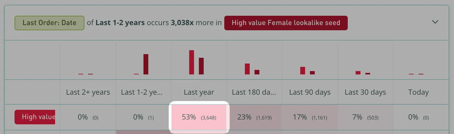 We updated the default display type for Spend, Orders, Counts, and Percentage attributes to show the average value instead of the percentile chart. The goal here is to make it easier to quickly analyse your search results.