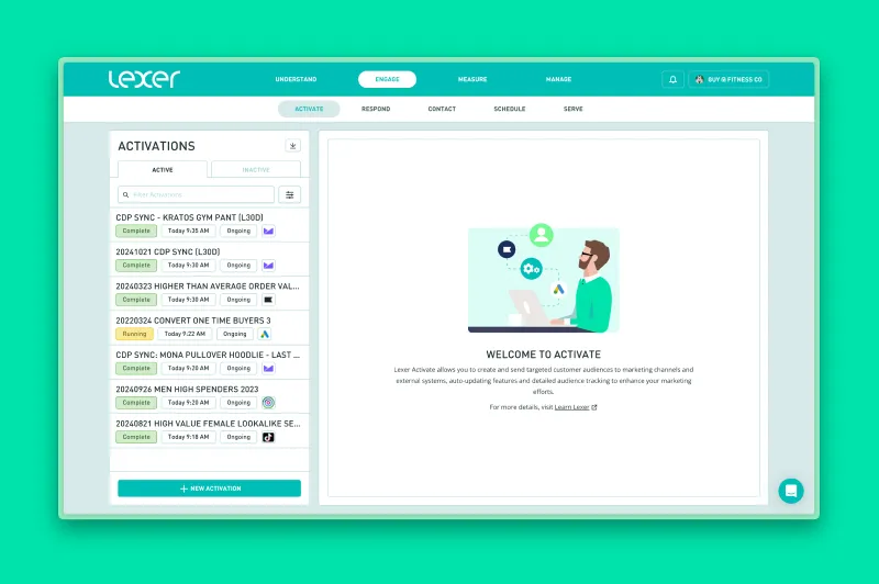 Activate has received a major refresh - with a sleek new look, new features, and improved performance that will take your audience activation and marketing personalization to the next level. https://learn.lexer.io/docs/activate-overview