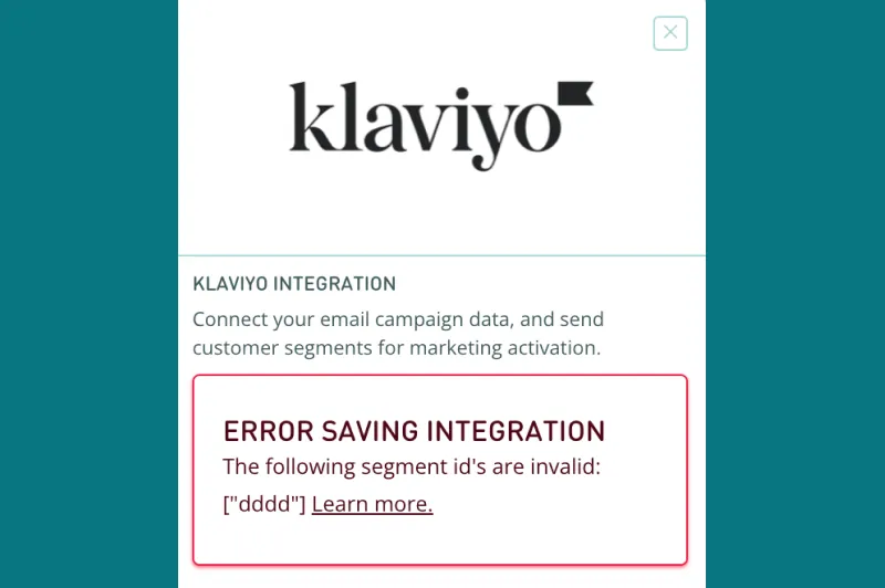 Klaviyo integration error messaging upgraded to now identify if a segment ID is invalid. https://learn.lexer.io/integrations/klaviyo