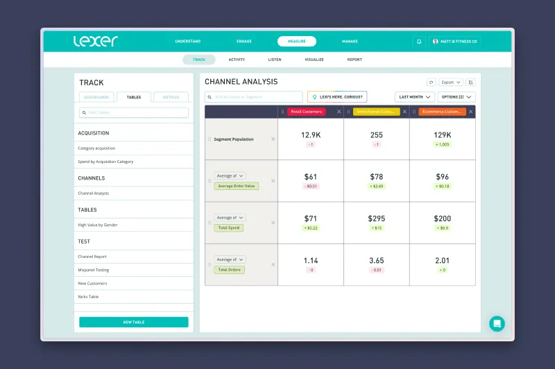 Tracking key customer metrics and changes in segments over time is now possible with Lexer Track Tables. Our new table builder turns metrics into must-have reports in seconds. https://learn.lexer.io/docs/track-tables