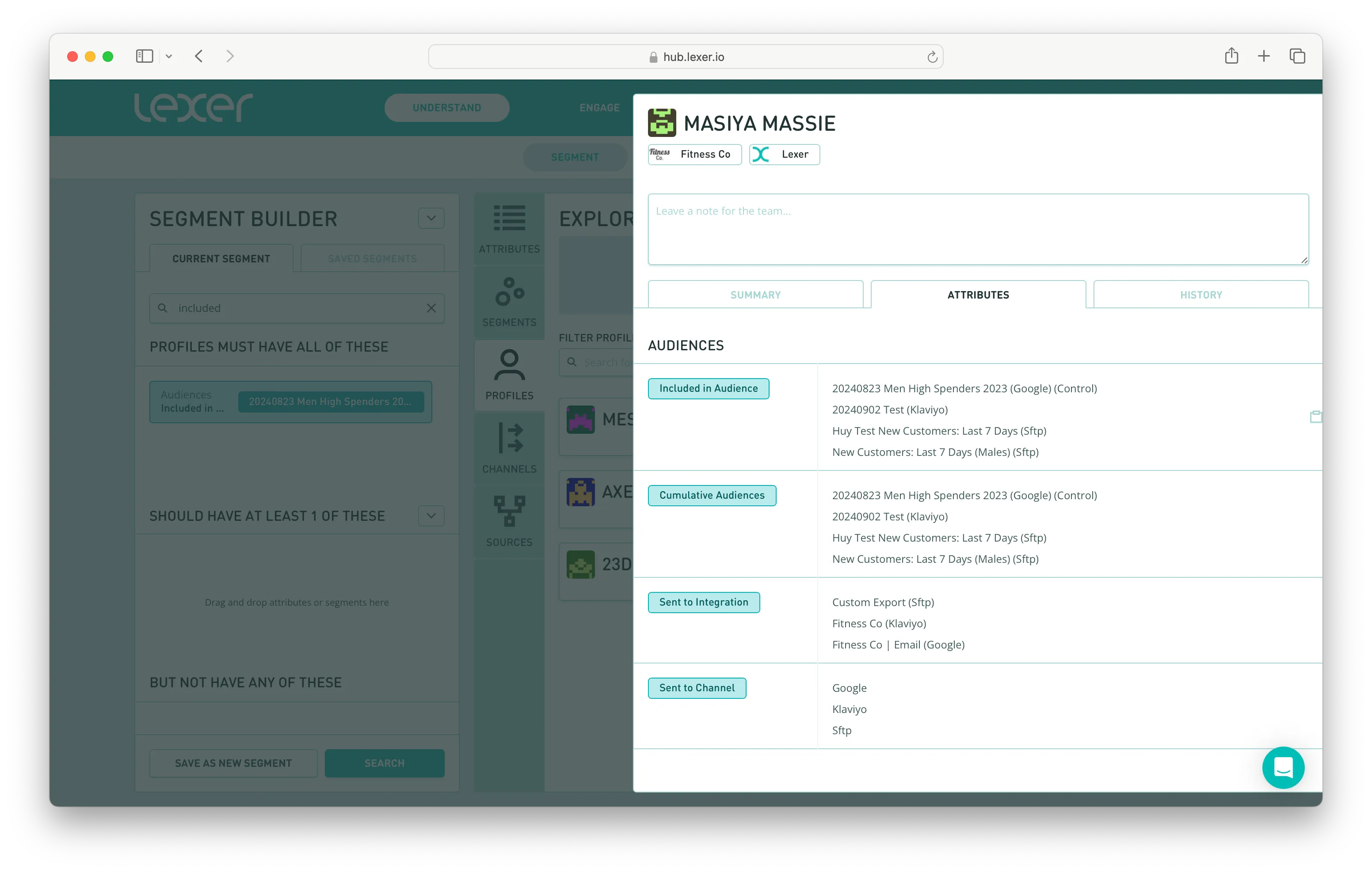 This attribute will record all audiences and splits this profile has been involved in. Let's have a look at a few examples in the Fitness Co hub.