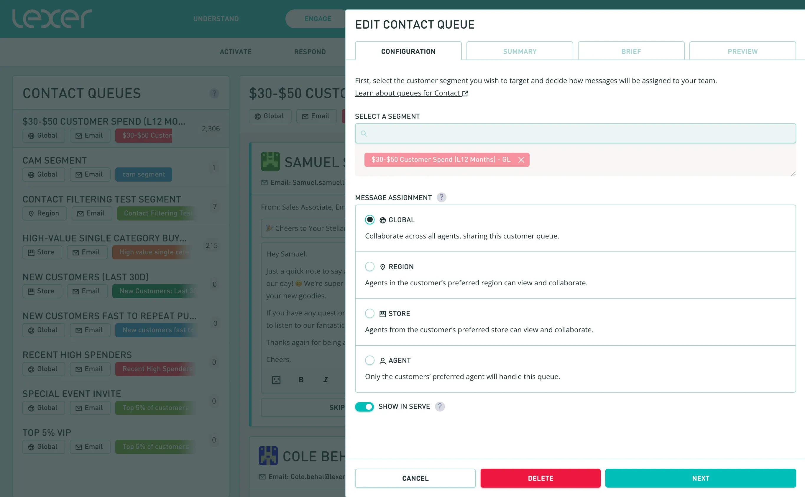 - Show in Serve: Enabling this feature will make the queue visible in Lexer Serve. Filters are automatically applied in Serve, ensuring consistencyNavigate between all other tabs to make any additional adjustments as needed.