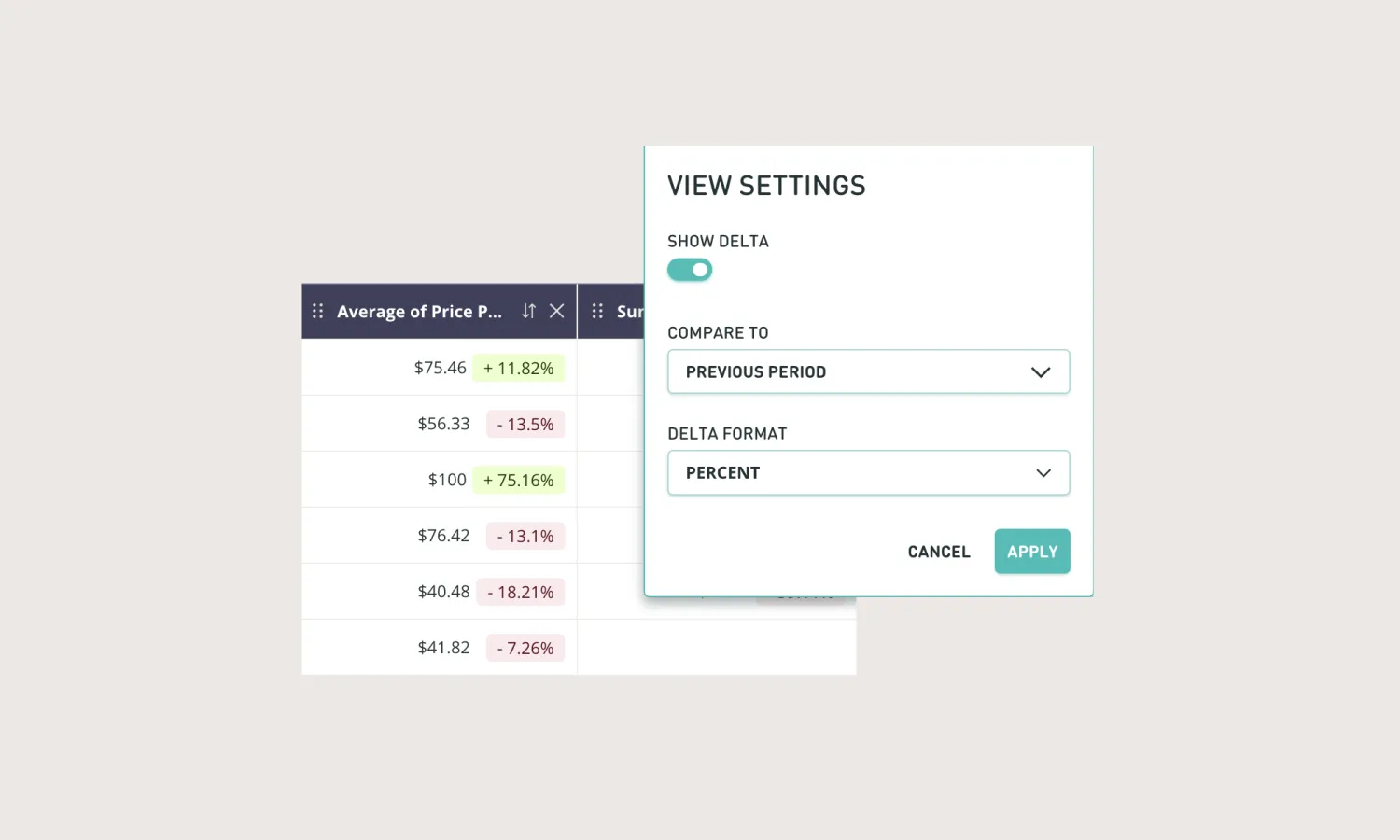 - View comparison data with percentage changes indicated in green (increase) or red (decrease)