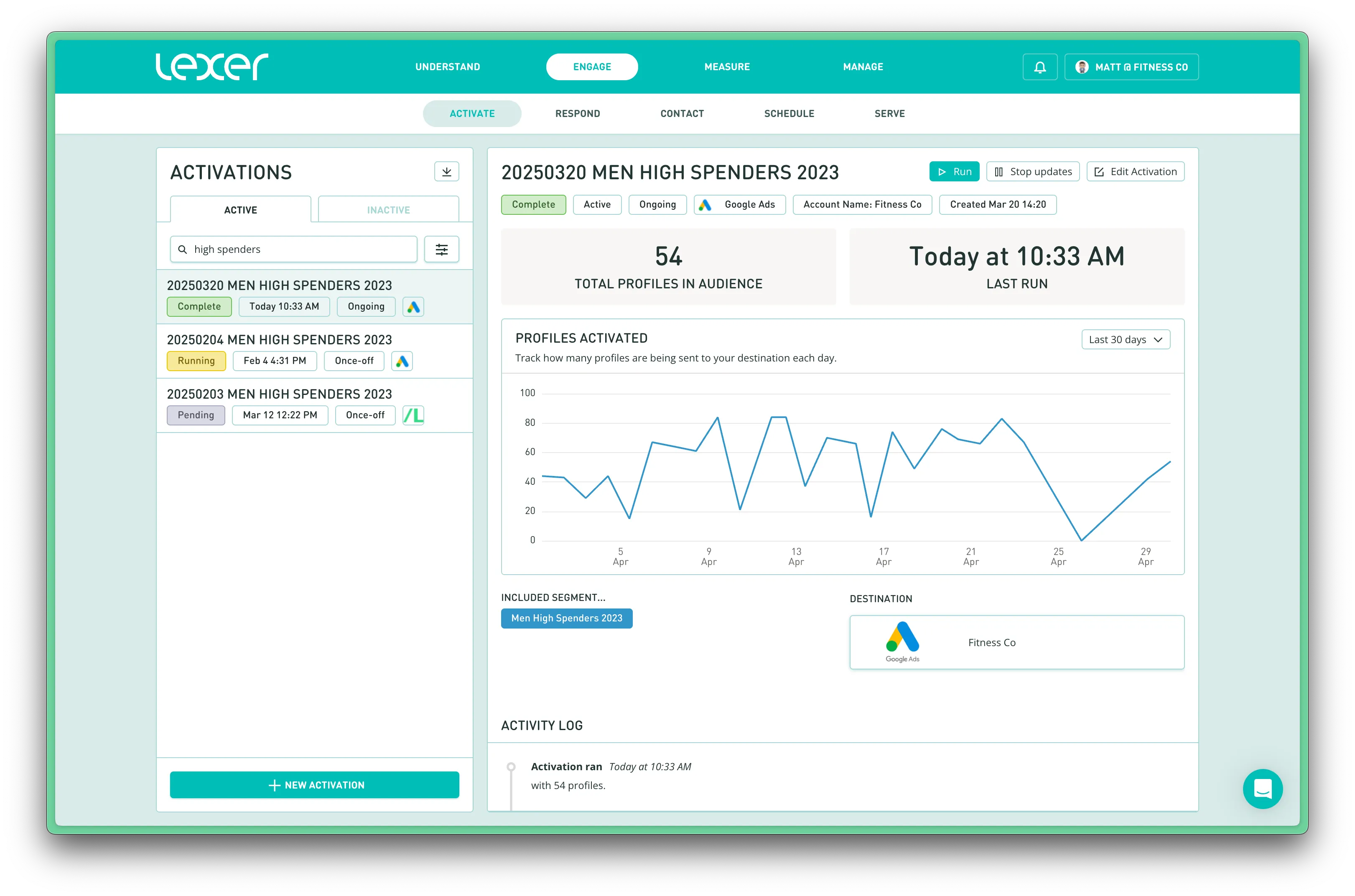 Activate connects your customer segments to your marketing and advertising platforms, refreshing your audiences daily to deliver personalized campaigns you can measure with confidence.