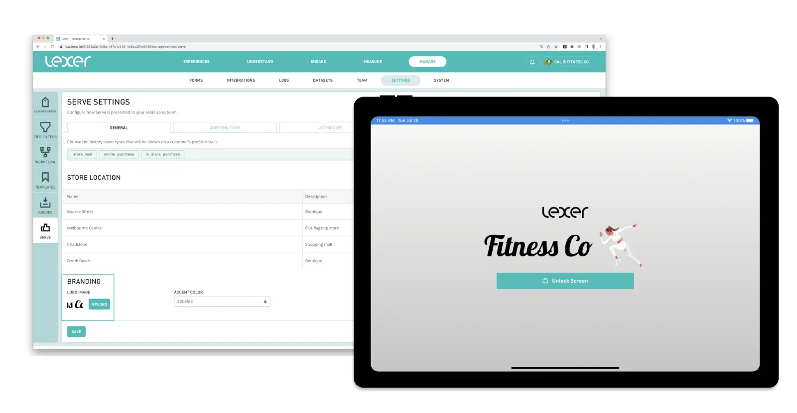 Upload your brand image to display in the Serve nav bar and in the lock screen.