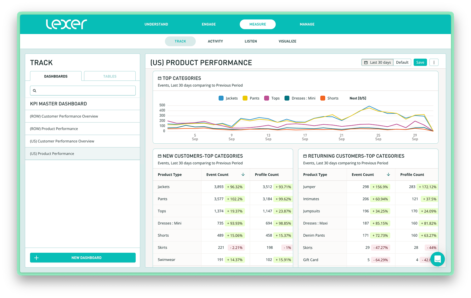 Lexer Track is a reporting tool built for retailers to quickly turn customer data from multiple sources into centralised, clear, customizable dashboards and reports.
