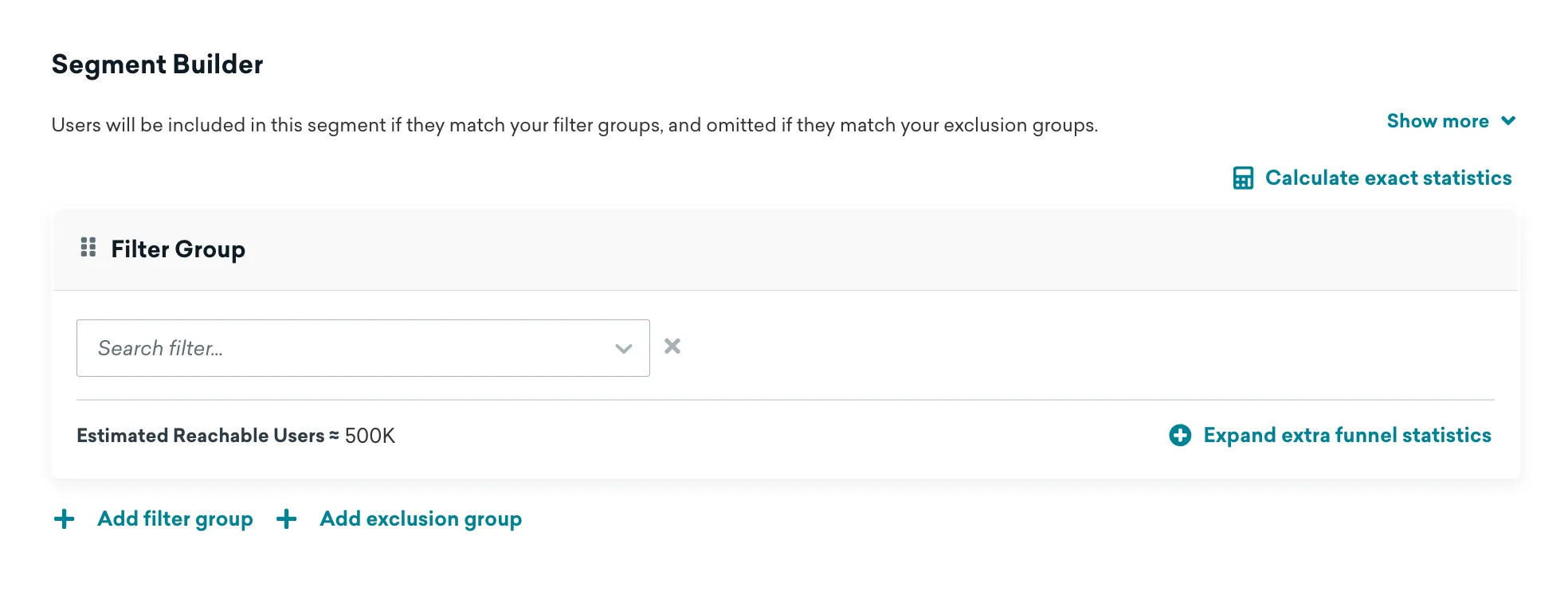 - Segment Builder > Filter Group: Leave this blank to include all users