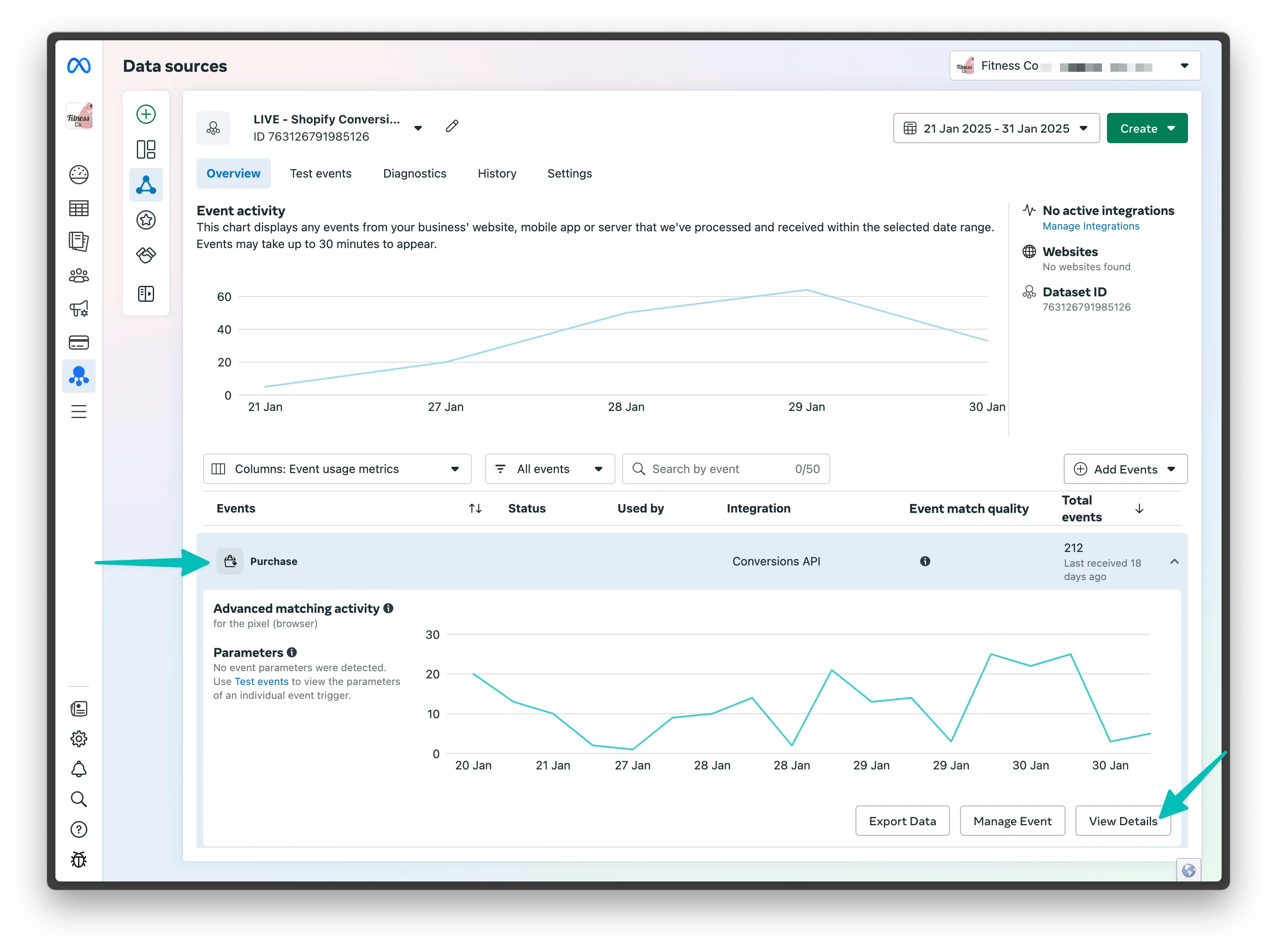 After connecting Lexer with your Meta offline conversions, you'll want to verify that your purchase events are being received correctly. Here's how to check your conversion events in Meta: