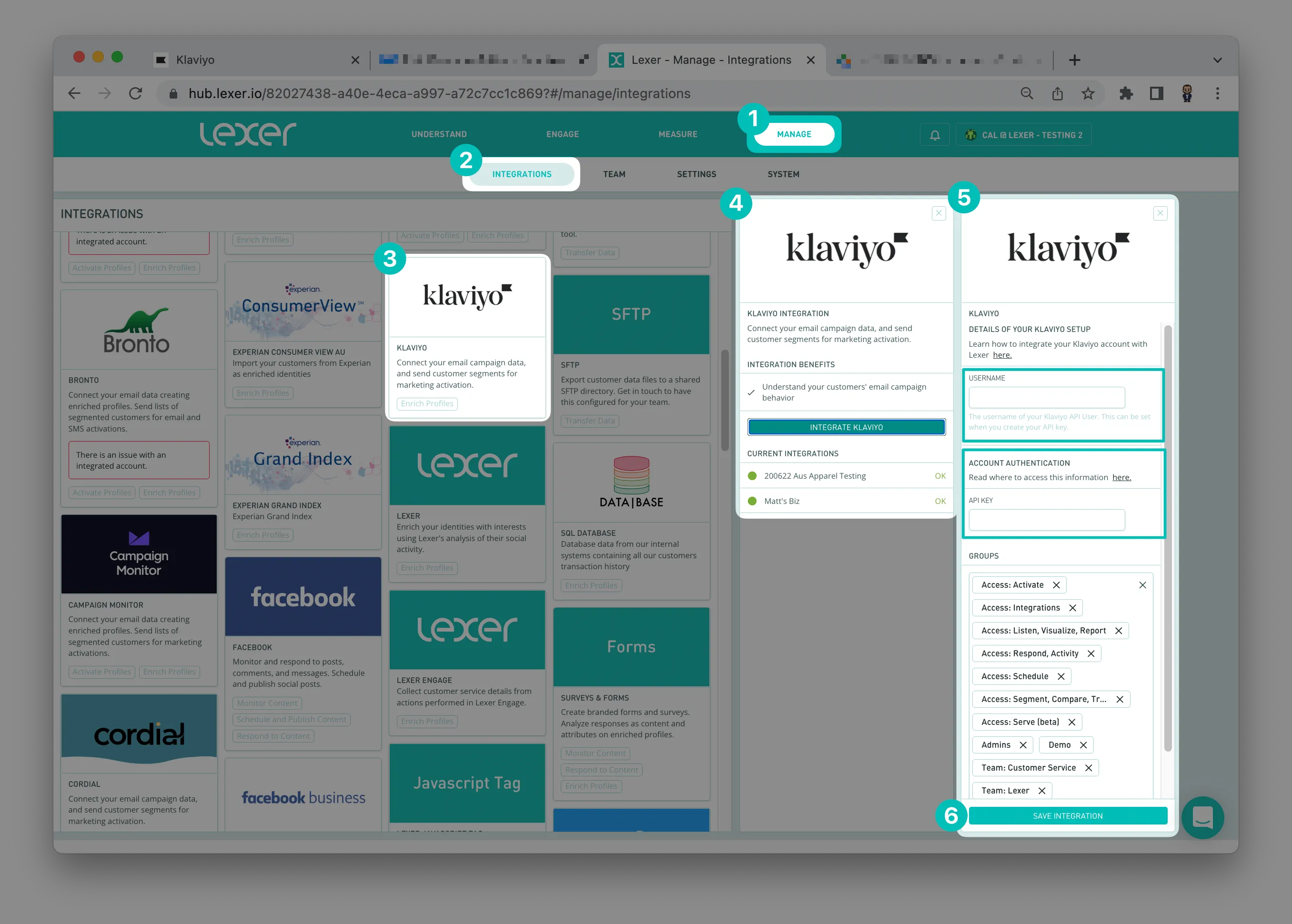 A step-by-step guide for integrating your Klaviyo account with Lexer.