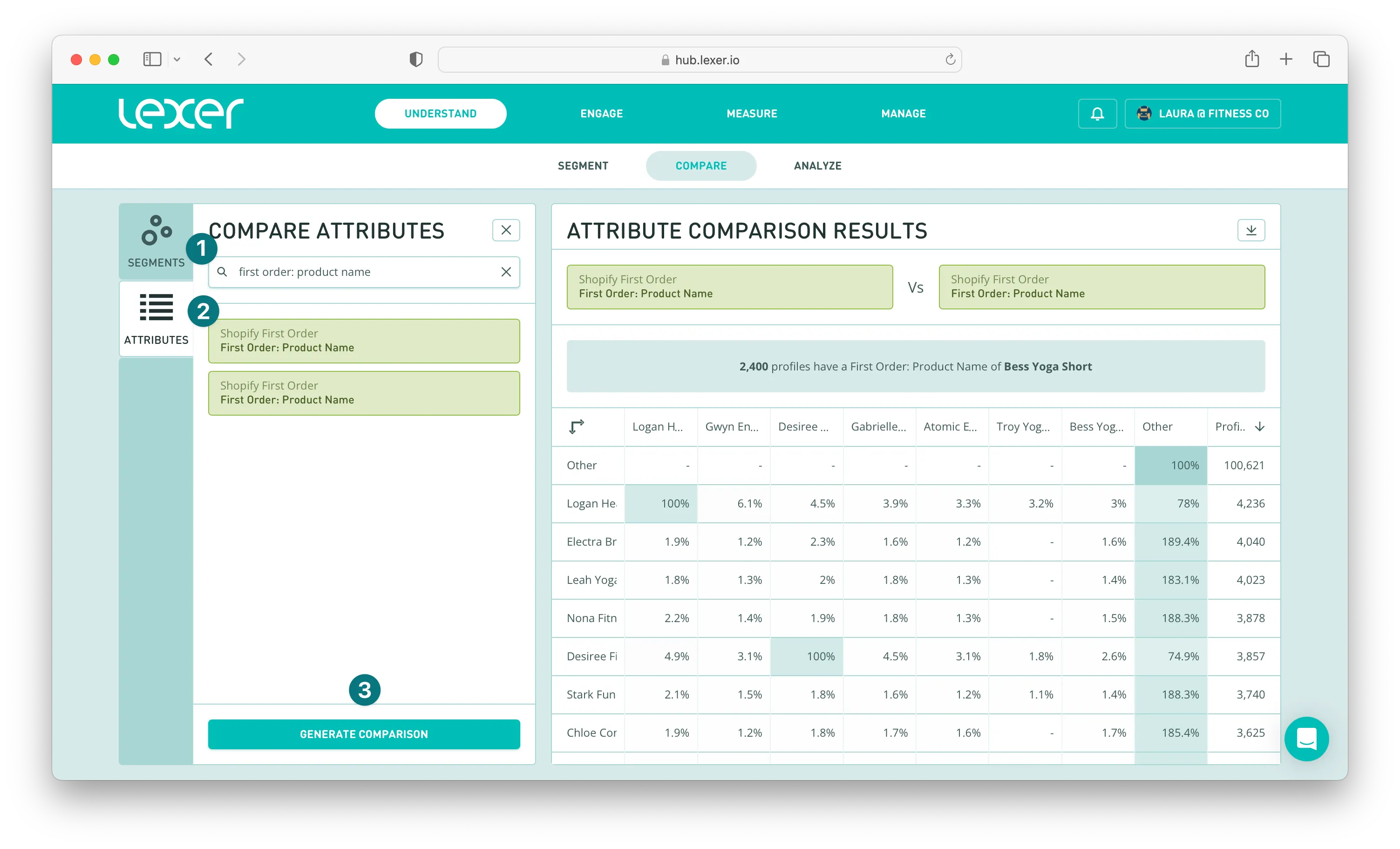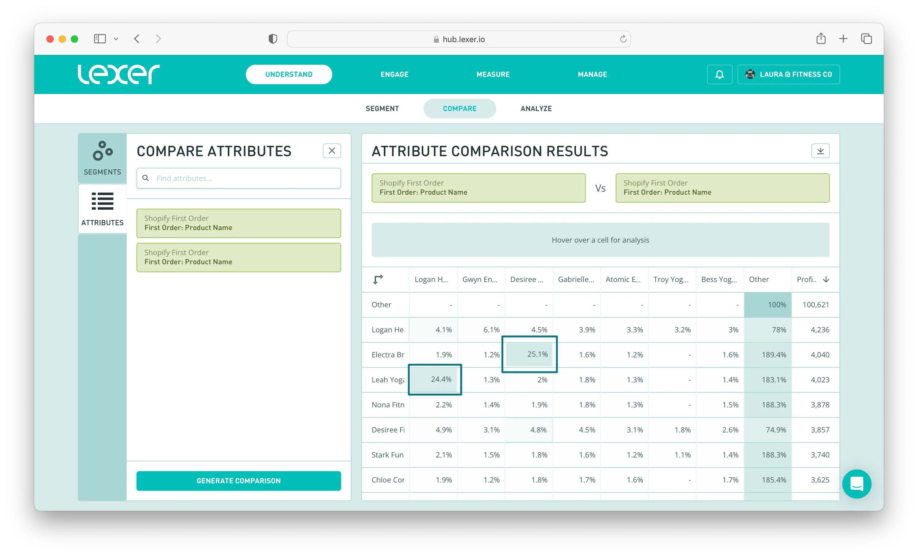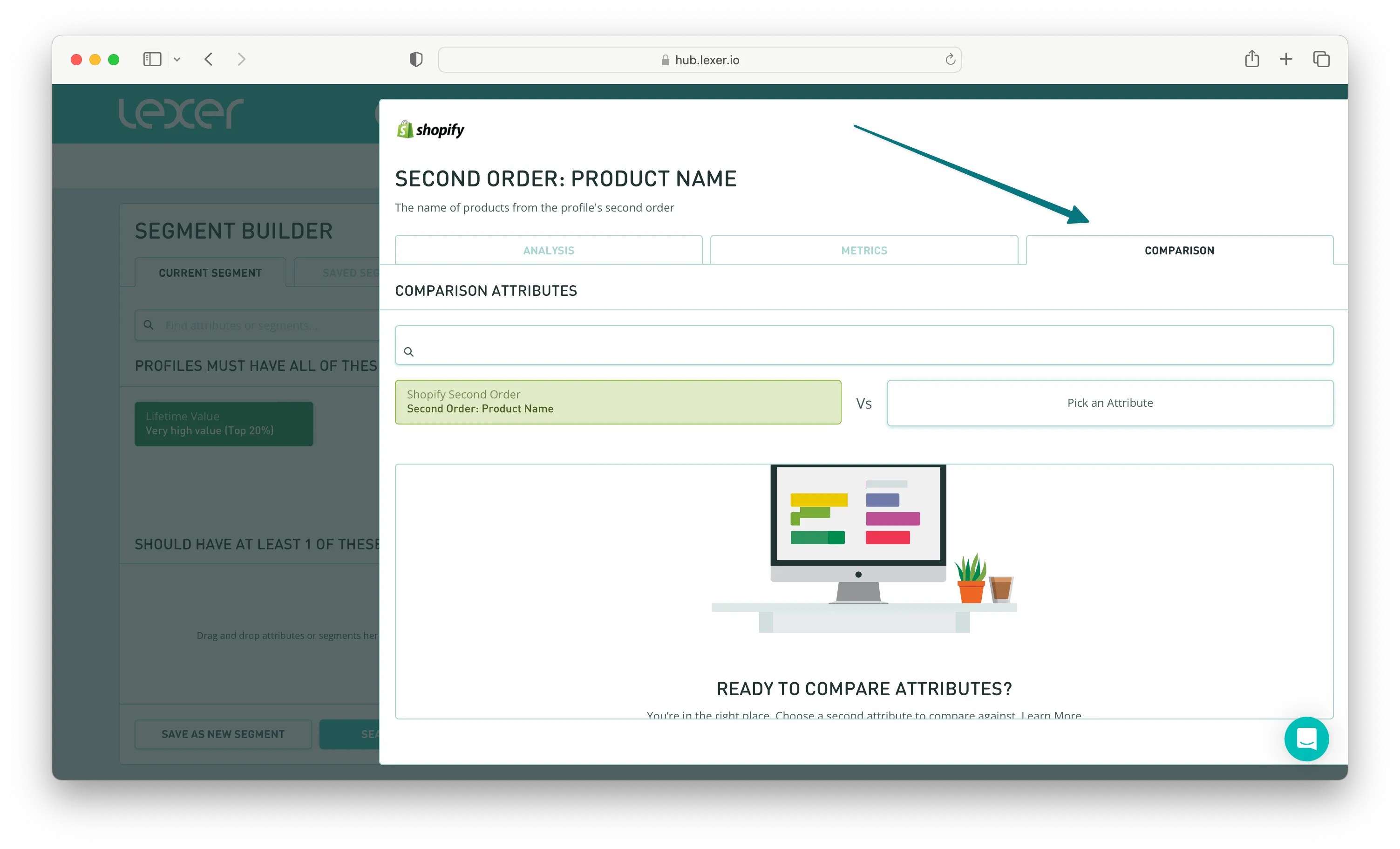 You can get even more specific with this comparison too. In Compare you’re querying your entire customer base. But, if you run your comparison in the Segment Builder then you can focus on a specific segment and the attributes within that segment.
