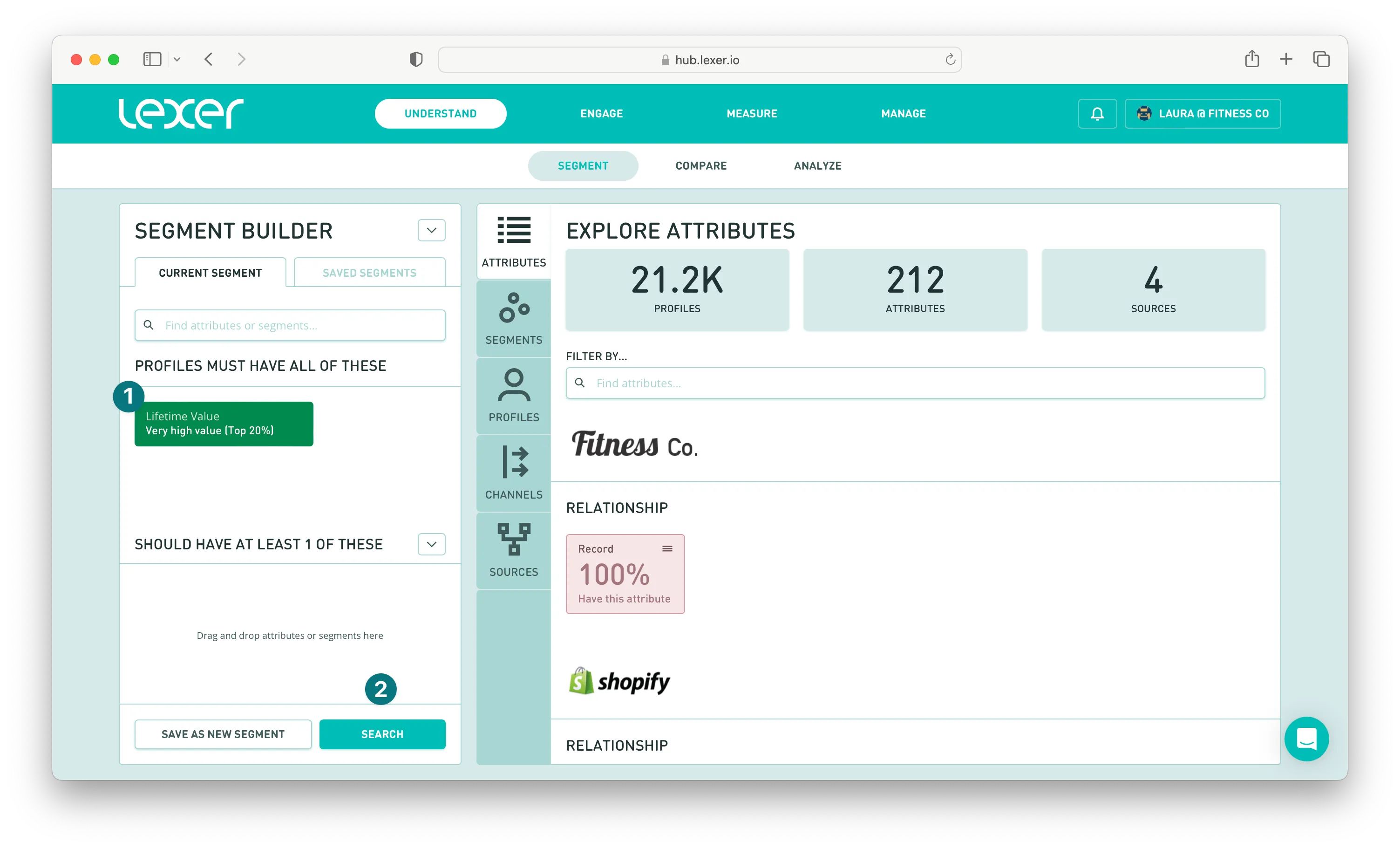 To do so, head over to the Segment Builder and add one of your high-value customer segments to the PROFILES MUST HAVE ALL OF THESE section of the builder. Then hit Search.
