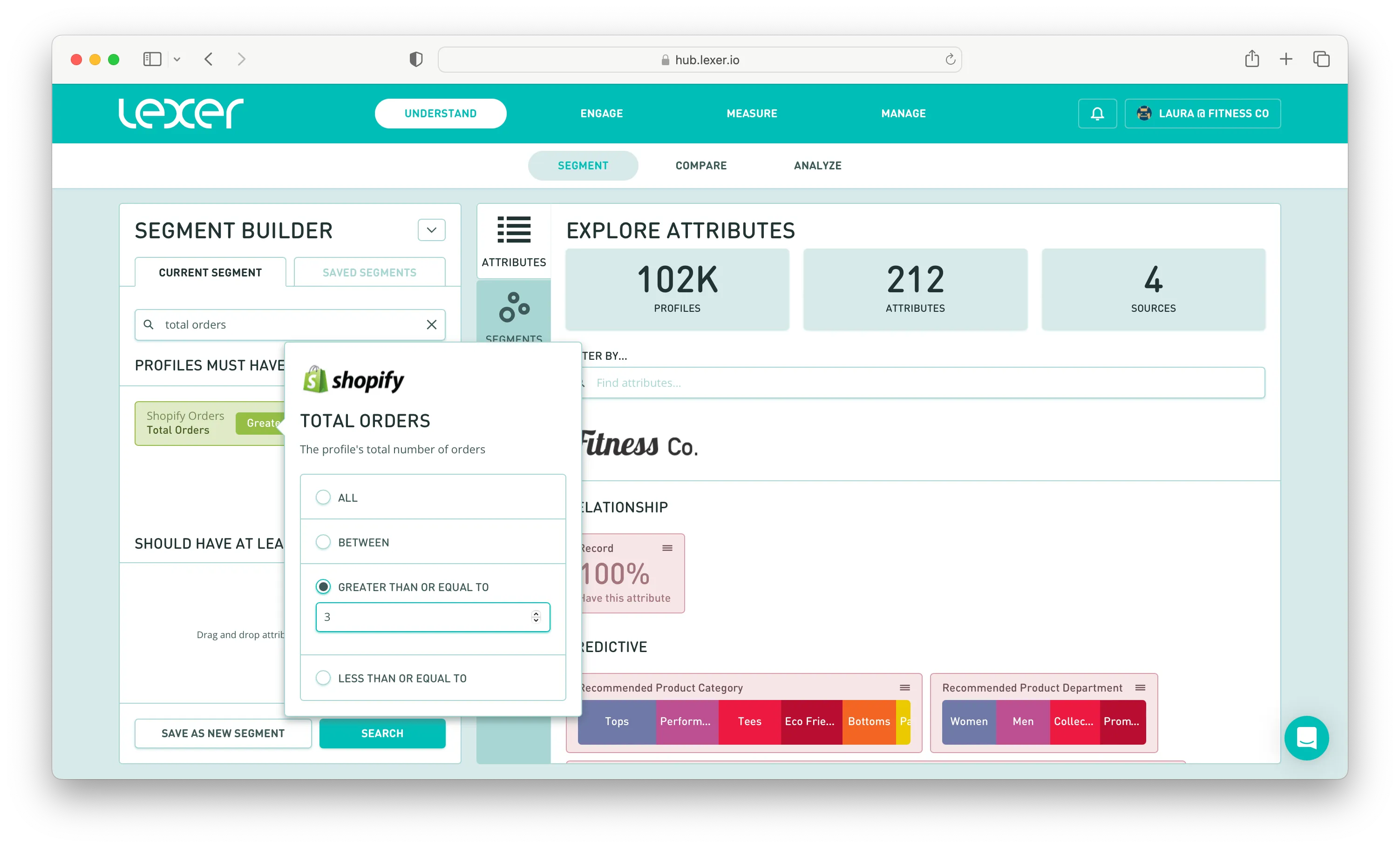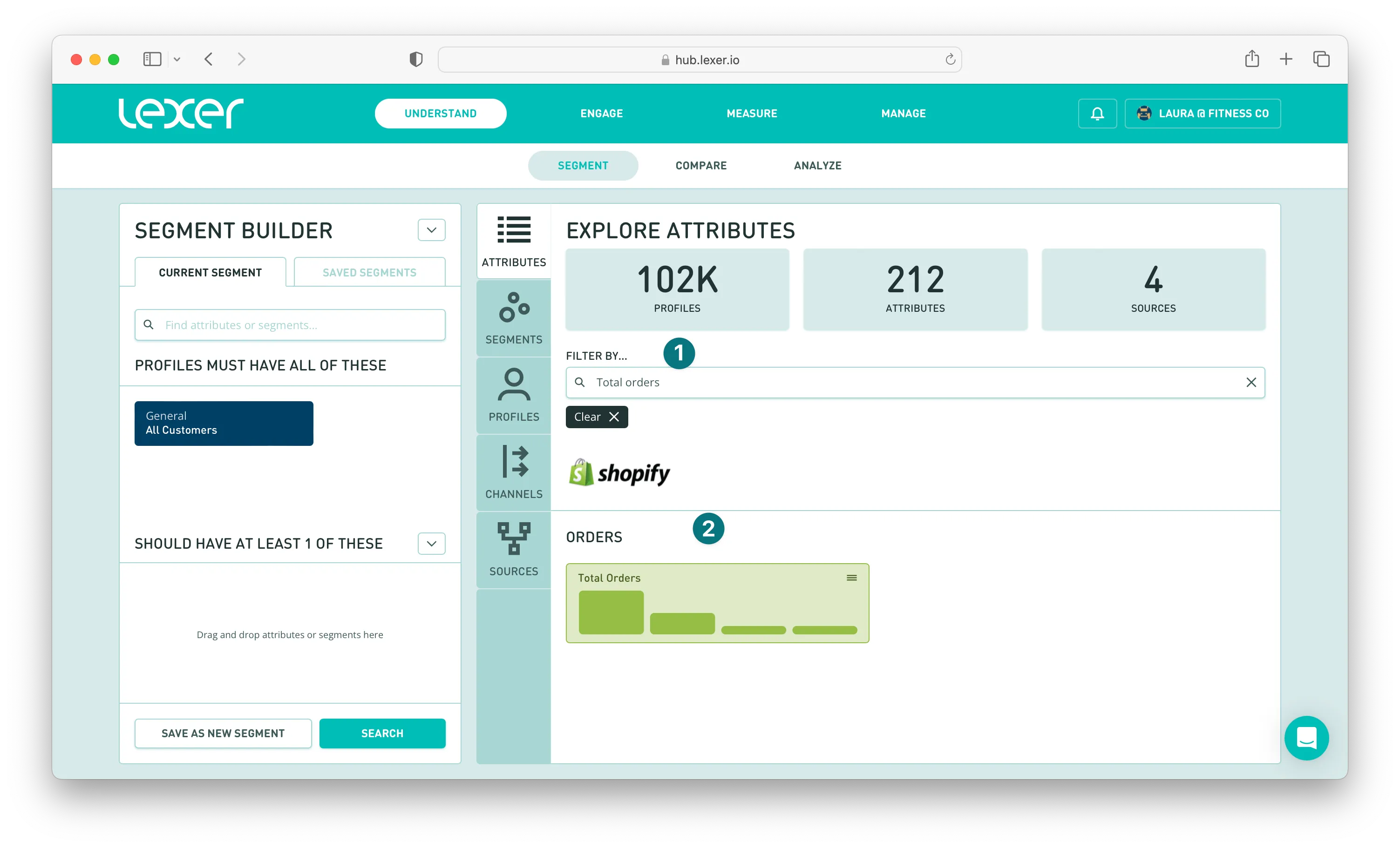 Then move to the right of the Segment Builder and under EXPLORE ATTRIBUTES search for Total Orders.